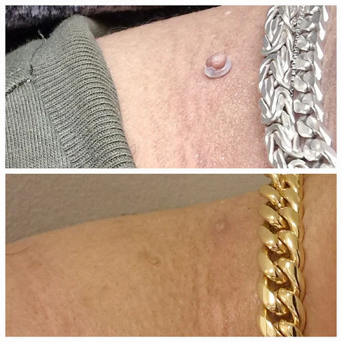 Hoewel het misschien zo lijkt, zijn gewone elastiekjes of flosdraad niet zo veilig of effectief als DermaClear Kit™ van Sanvero. Onze set gebruikt speciaal ontworpen micro-elastiekjes die de bloedtoevoer naar de huidlaesie nauwkeurig afsluiten zonder de gezonde huid te beschadigen.